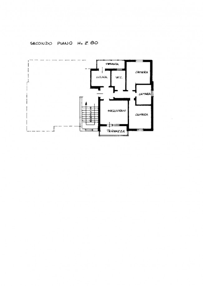 L'Appartamento situato al secondo ed ultimo piano (no ascensore), si compone internamente da ingresso, cucina abitabile con veranda, soggiorno con terrazza, disimpegno notte, camera matrimoniale, camera doppia, camera singola, bagno finestrato con vasca. Completano la proprietà un'ampia cantina al piano interrato ed un garage al piano terra.