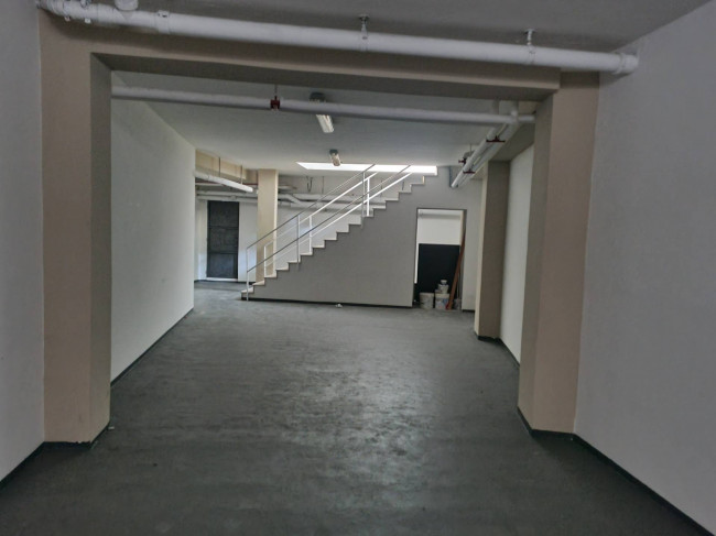 Questo locale commerciale si trova al piano terra di un condominio, offre una superficie totale di circa 210 metri quadrati, di cui circa 130 mq al piano terra e circa 80 mq al piano interrato. Si compone al piano terra da due vani vetrinati, due vani retrostanti e dal servizio, attraverso una scala di collegamento interno si raggiunge l'ampio scantinato composto da un unico vano.