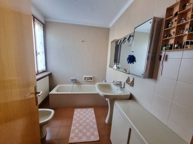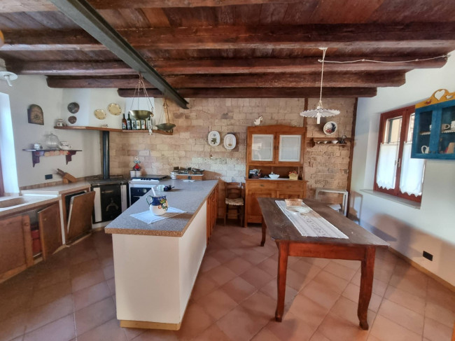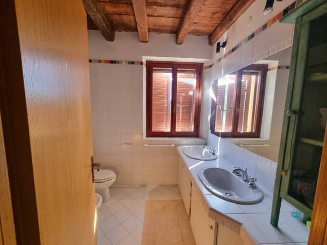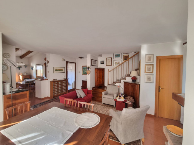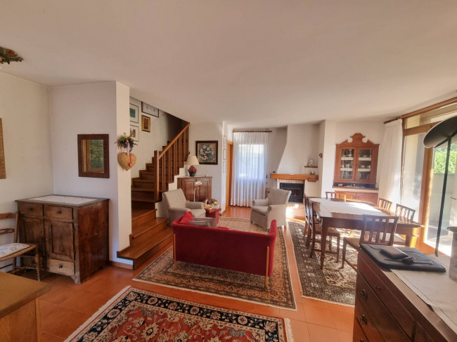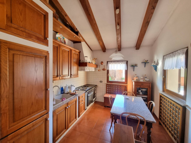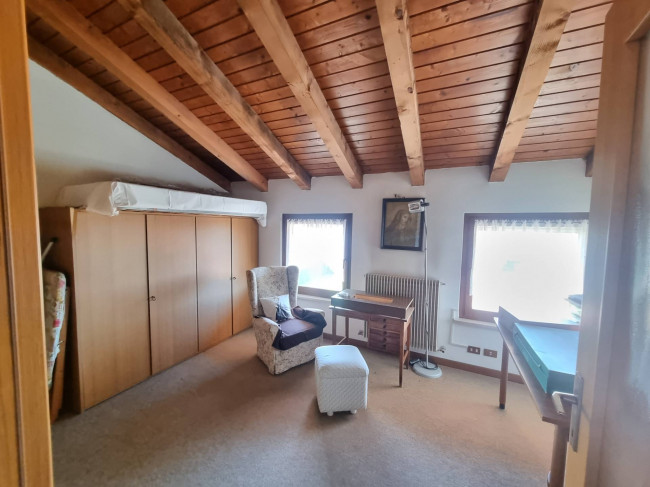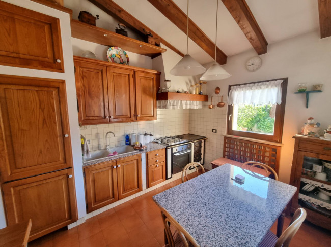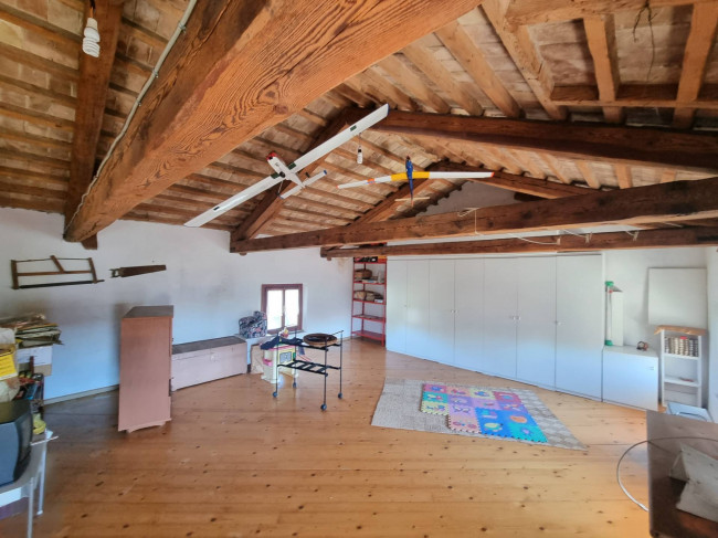 La casa più ampia (90 mq circa per piano) è stata ristrutturata nel 1995 circa si dispone su due piani più sottotetto, si caratterizza per la presenza delle travature a vista in legno su tutti i piani e si compone al piano terra da un ampio soggiorno con caminetto, cucina spaziosa con arredo in muratura e spolert, studio, ripostiglio e c.t. Al piano primo troviamo un disimpegno, una camera padronale con interni bagno e cabina armadio entrambi finestrati, una camera doppia con cabina armadio e terrazza, un'ulteriore stanzetta, un altro bagno finestrato. Nel sottotetto troviamo un ampio vano, una stanza ed un servizio/lavanderia.